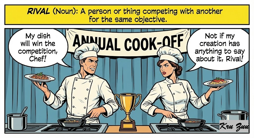 Rival (Noun): A person or thing competing with another for the same objective.