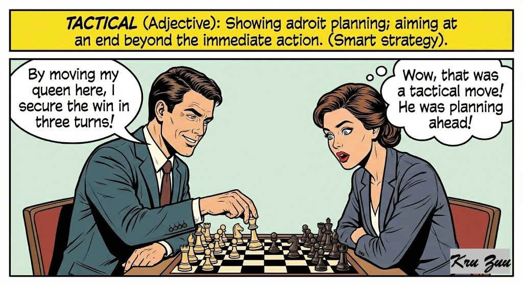 Tactical (Adjective): Showing adroit planning; aiming at an end beyond the immediate action. (Smart strategy).