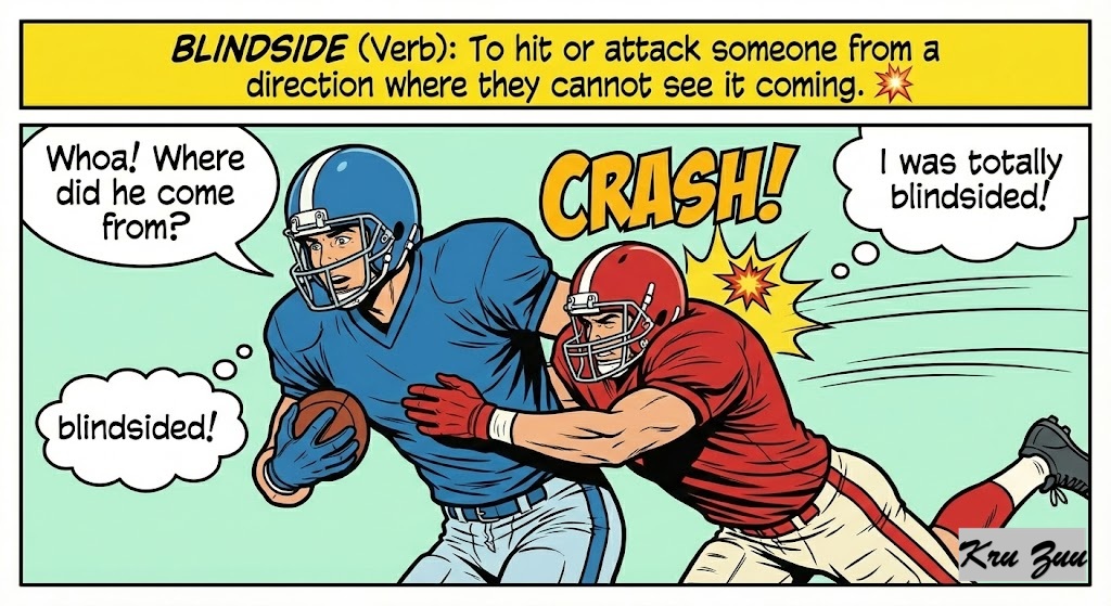 Blindside (Verb): To hit or attack someone from a direction where they cannot see it coming. 💥