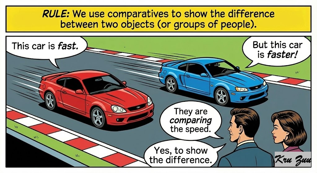 Rule: We use comparatives to show the difference between two objects (or groups of people).