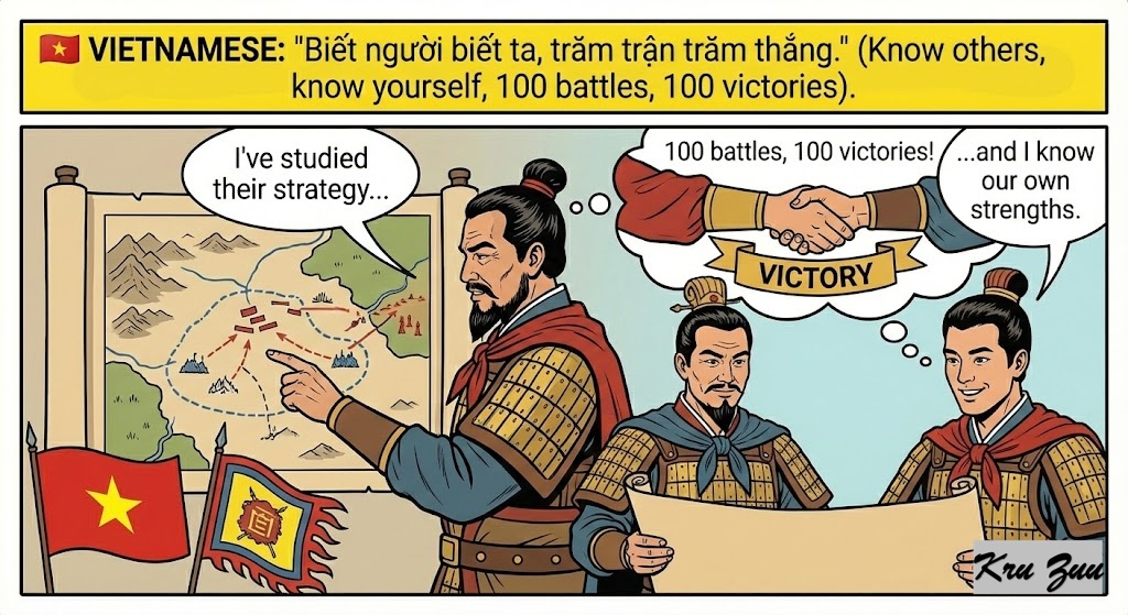🇻🇳 Vietnamese: “Biết người biết ta, trăm trận trăm thắng.” (Know others, know yourself, 100 battles, 100 victories).