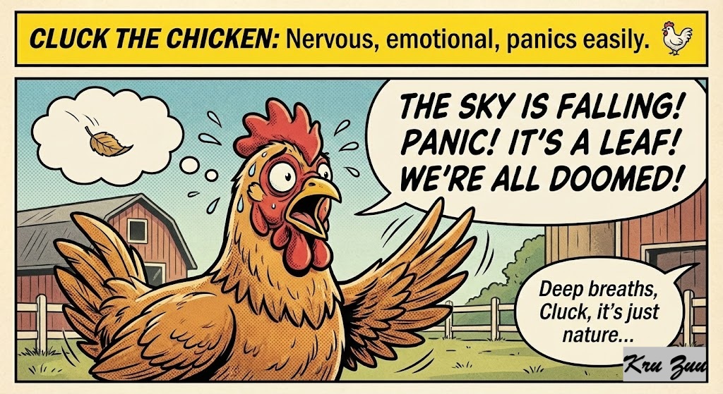 Cluck the Chicken: Nervous, emotional, panics easily. 🐔
