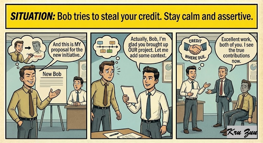 Situation: You have a coworker (let’s call him Bob) who tries to steal your credit or make you look bad.