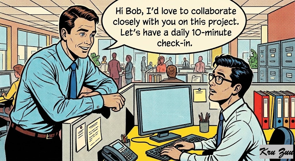 You Say:“Hi Bob, I’d love to collaborate closely with you on this project. Let’s have a daily 10-minute check-in.”