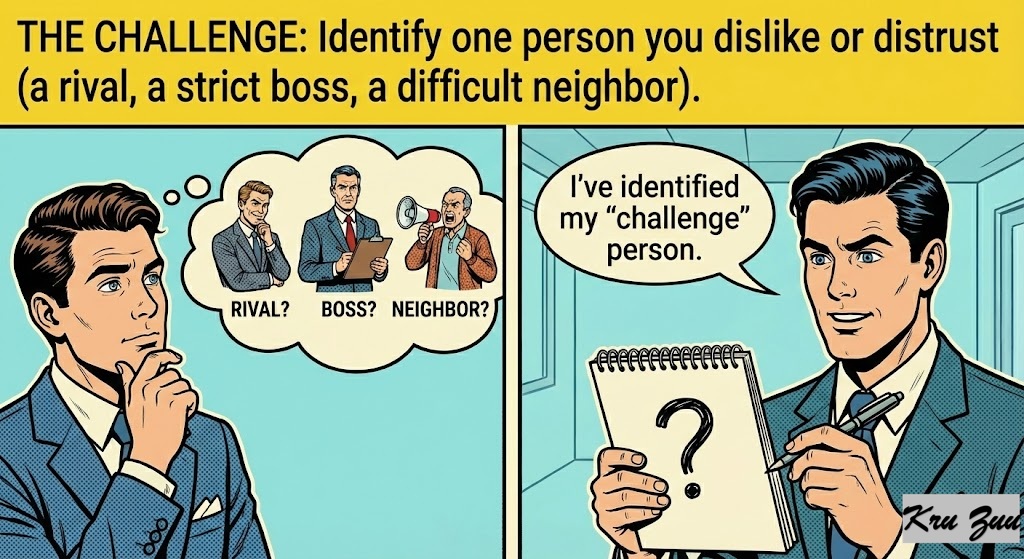 The Challenge: Identify one person you dislike or distrust (a rival, a strict boss, a difficult neighbor).