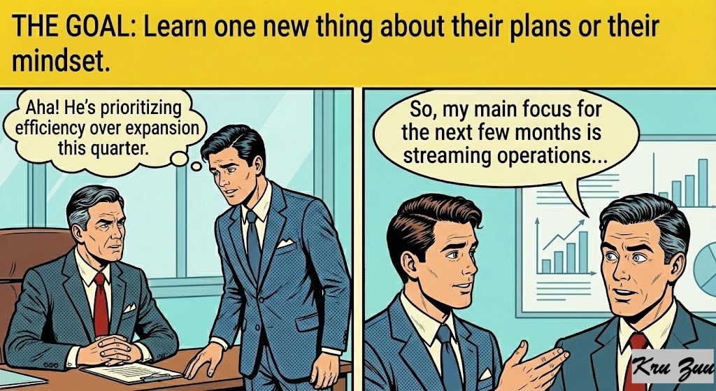 The Goal: Learn one new thing about their plans or their mindset.