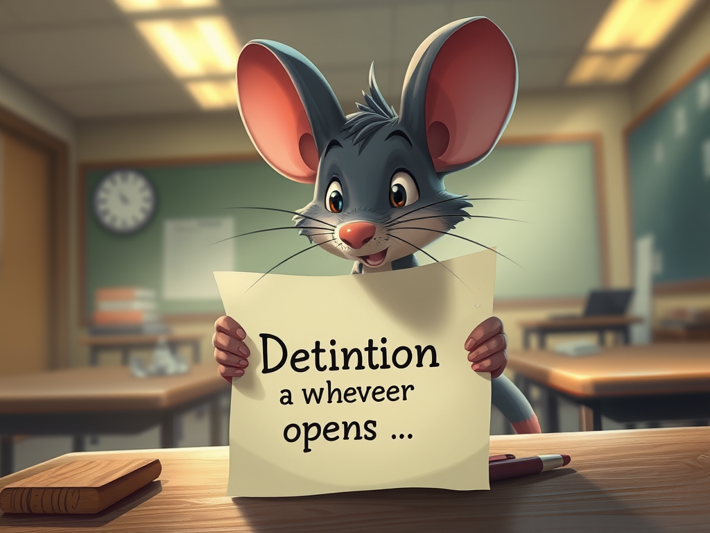 The Trap: Inside, there is only a piece of paper that says: “Detention for whoever opens this.” The teacher walks in. Max is caught. Curiosity killed Max’s free time. 💀