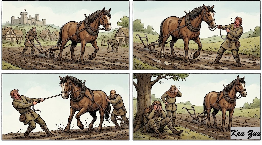 The Origin: It was first recorded in 1175 in Old English homilies. Horses were essential for survival (transport, farming). Everyone knew that a stubborn horse could not be moved, no matter how strong the farmer was.