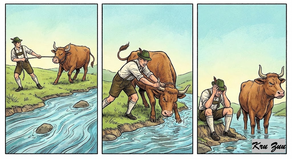 🇩🇪 German: “Man kann einen Ochsen zum Wasser führen, aber man kann ihn nicht zwingen, zu saufen.” (You can lead an ox to water, but you can’t force it to booze/drink.)