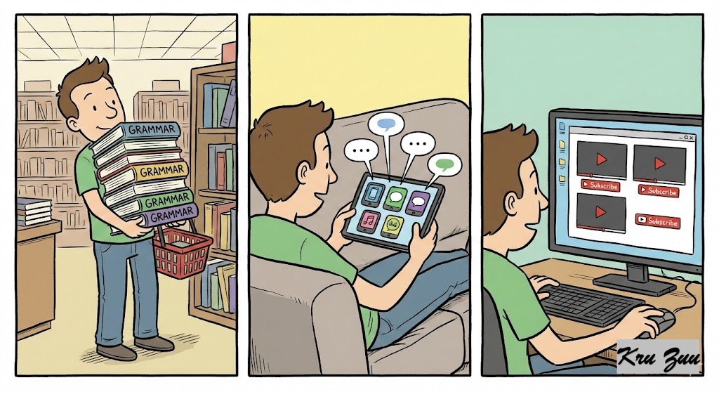 The Situation: You buy 10 grammar books. You download 5 language apps. You subscribe to 3 YouTube channels.