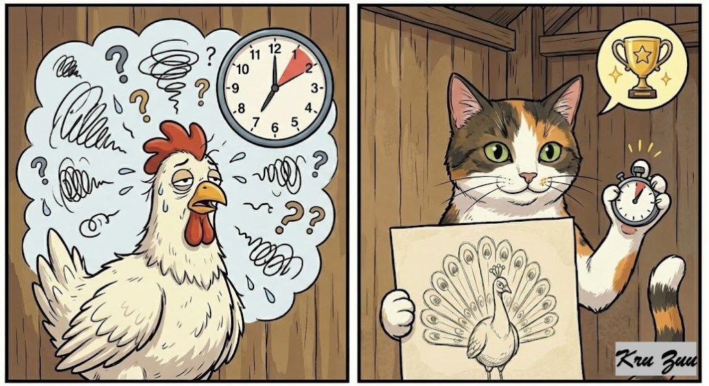The Moral: Clucky wasted an hour and a thousand panicked words. Whiskers used one minute and one picture. Whiskers won. π