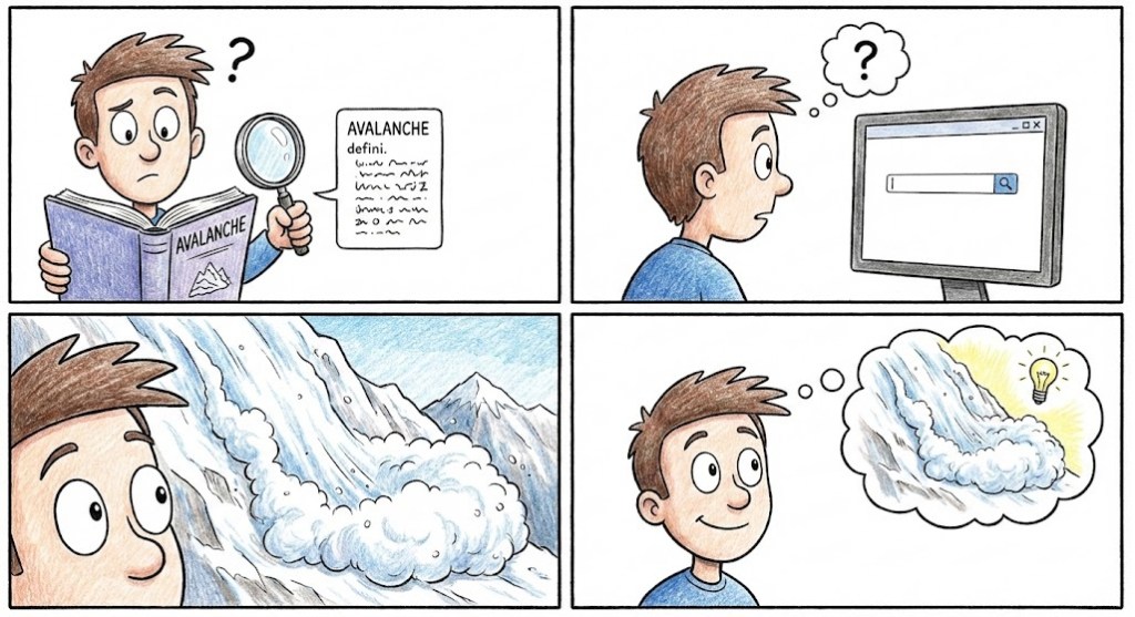 Google Images > Dictionary: When you learn a new word (e.g., “Avalanche”), don’t read the definition (“a mass of snow⦔). Go to Google Images. Look at the photo. Your brain will lock that image in forever.
