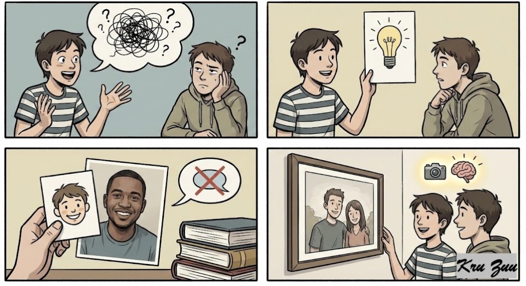 Words are abstract. Images are concrete. We live in a visual world. Instagram, TikTok, and YouTube dominate because our brains are lazy, they want the information now. Words are the map; the picture is the territory.