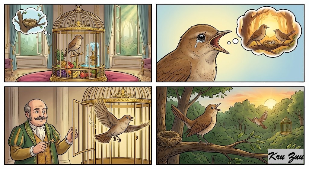 🇹🇷 Turkish: “Bülbülü altın kafese koymuşlar, ‘ah vatanım’ demiş.” (They put the nightingale in a golden cage, it cried ‘oh my homeland’.) OR “Evim güzel evim.”