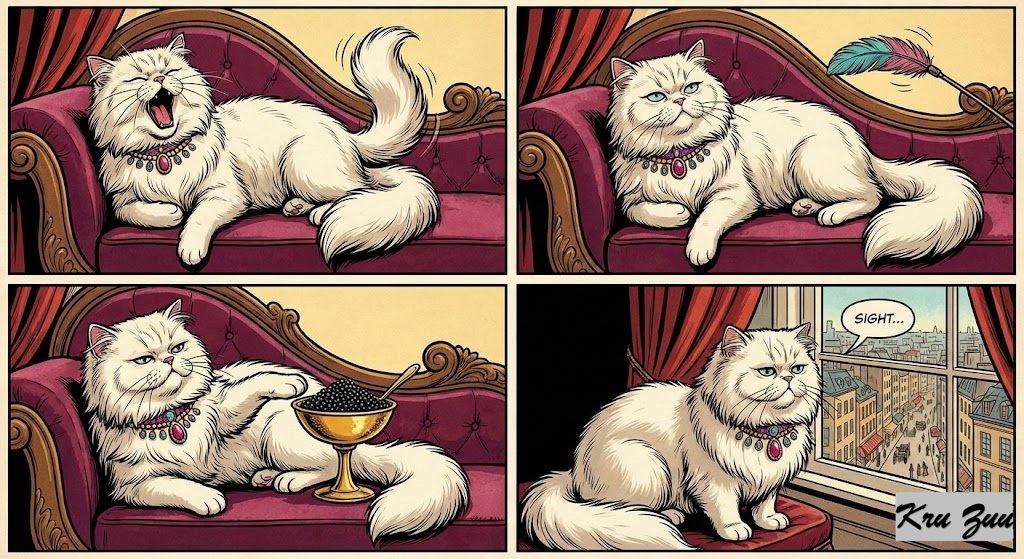 Cleo loved the velvet chairs but panicked when the staff shouted, “No pets allowed!” and chased them with a broom. “Too stressful!” she hissed.