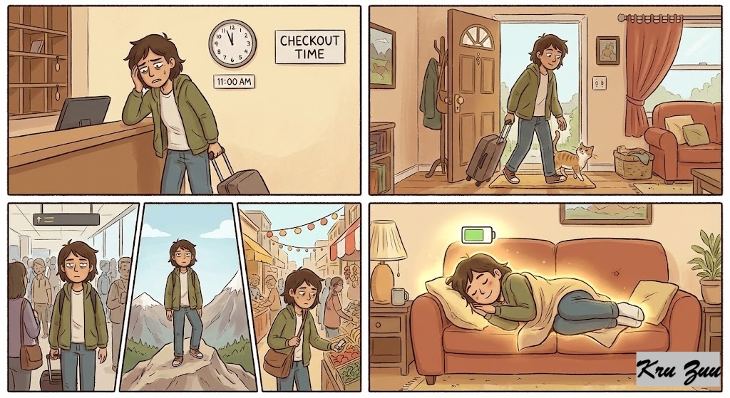 You are always looking for happiness somewhere else. You say, “If I move to that city, I will be happy.” or “If I go to this fancy cafe, I will feel better.” You travel, you wander, you stay in expensive hotels. But everywhere you go, you feel restless. You are wearing a mask all day to impress strangers. You are exhausted because you have nowhere to truly recharge. You are a homeless soul in a world of houses. 🧳