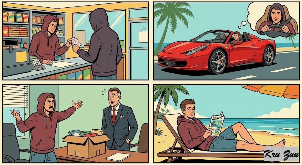 You buy a lottery ticket. You haven’t won yet, but you are already mentally buying a Ferrari. You tell your boss, “I quit!” because you are sure you will win. You plan a vacation to the Maldives.