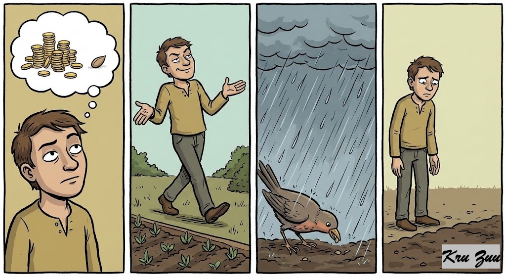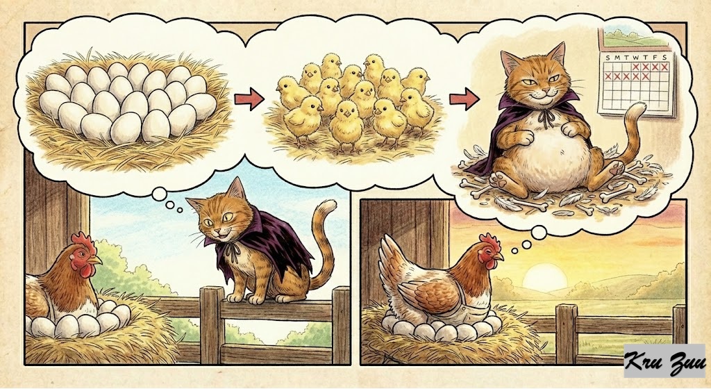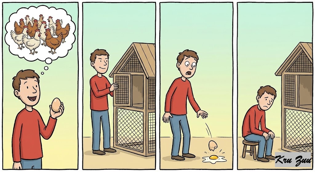 This wisdom is ancient. It comes from one of Aesop’s Fables (“The Milkmaid and Her Pail”), where a girl imagines selling milk to buy eggs to buy chickens… until she drops the milk bucket and loses everything.