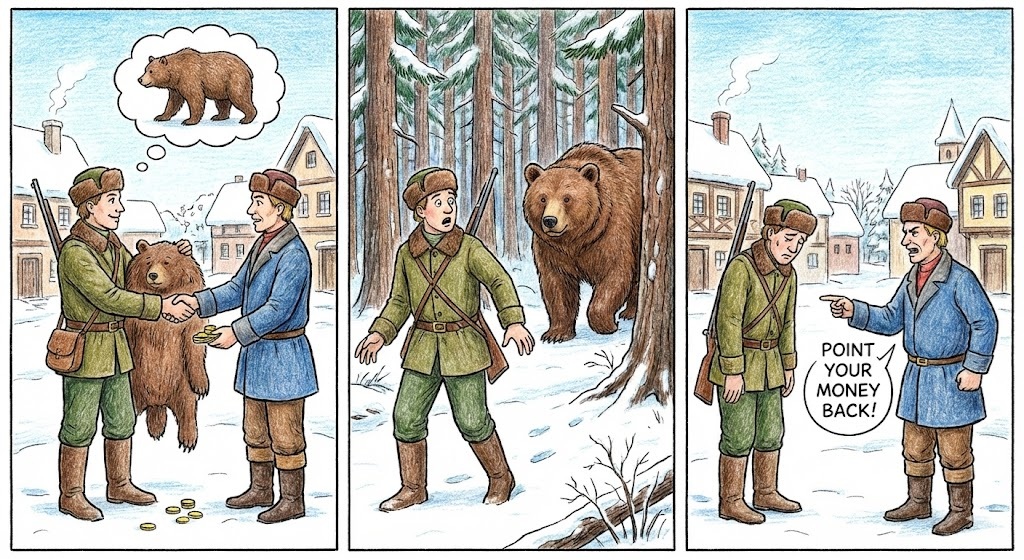 🇪🇸 Spanish:“No vendas la piel del oso antes de cazarlo.” (Don’t sell the bear’s skin before you hunt it.)