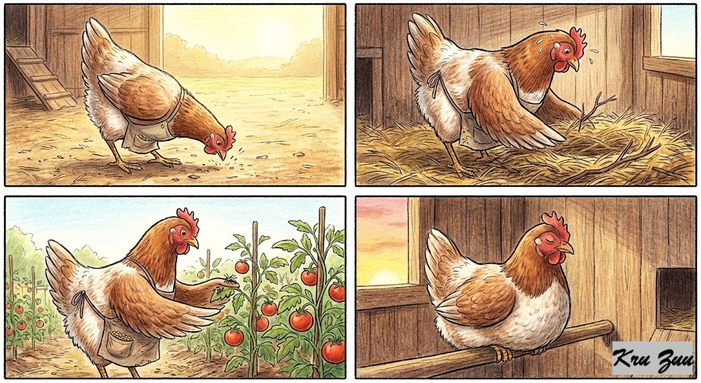 🐔 Mrs. Pecks (The Chicken): Hardworking and silent.