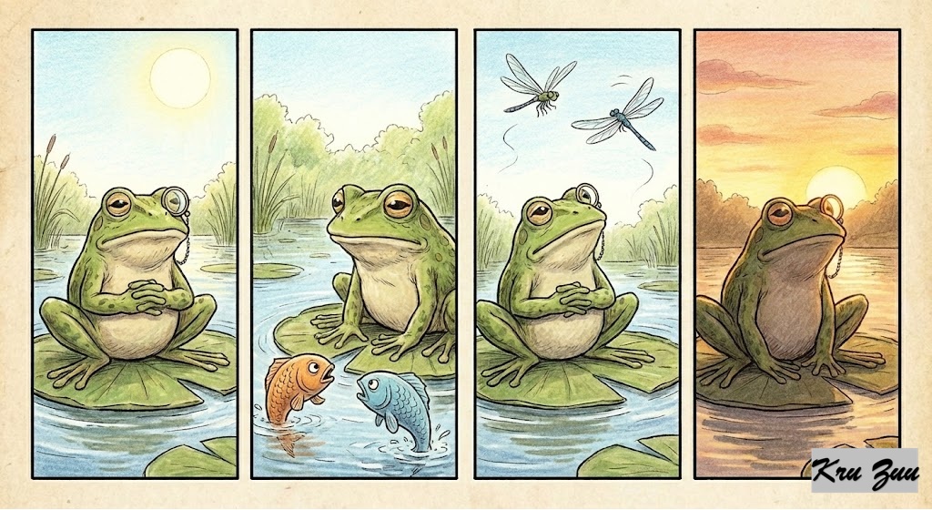 Croak: “Ribbit. I told you. You counted your chickens, but now you only have an empty stomach.”
