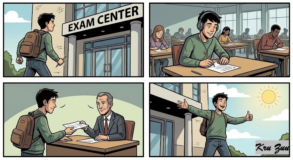 Situation: You take an English exam (IELTS/TOEFL). You feel good.