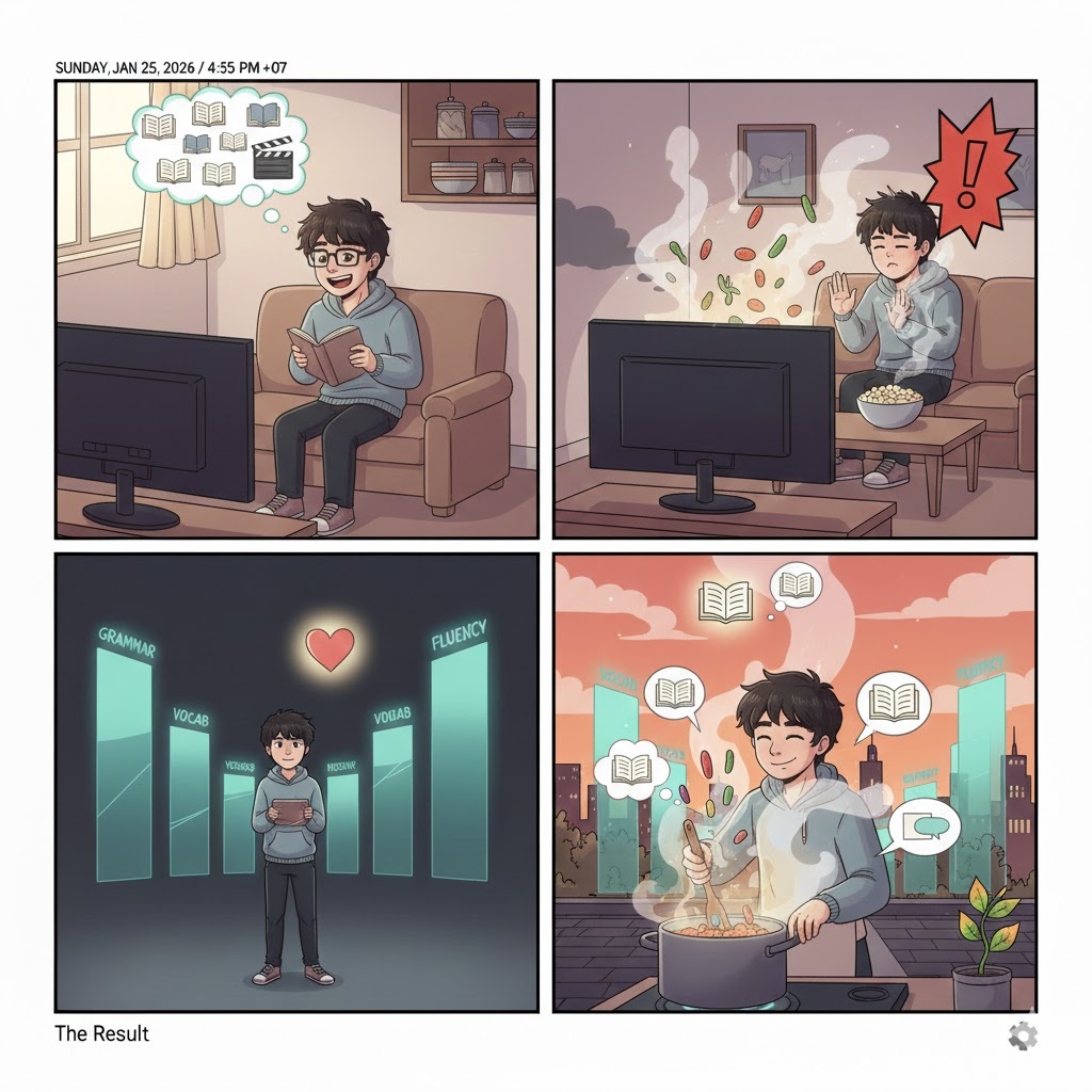 The Result: One day, you will realize you understood a whole movie without subtitles. The pot boiled while you weren’t looking! 🎬