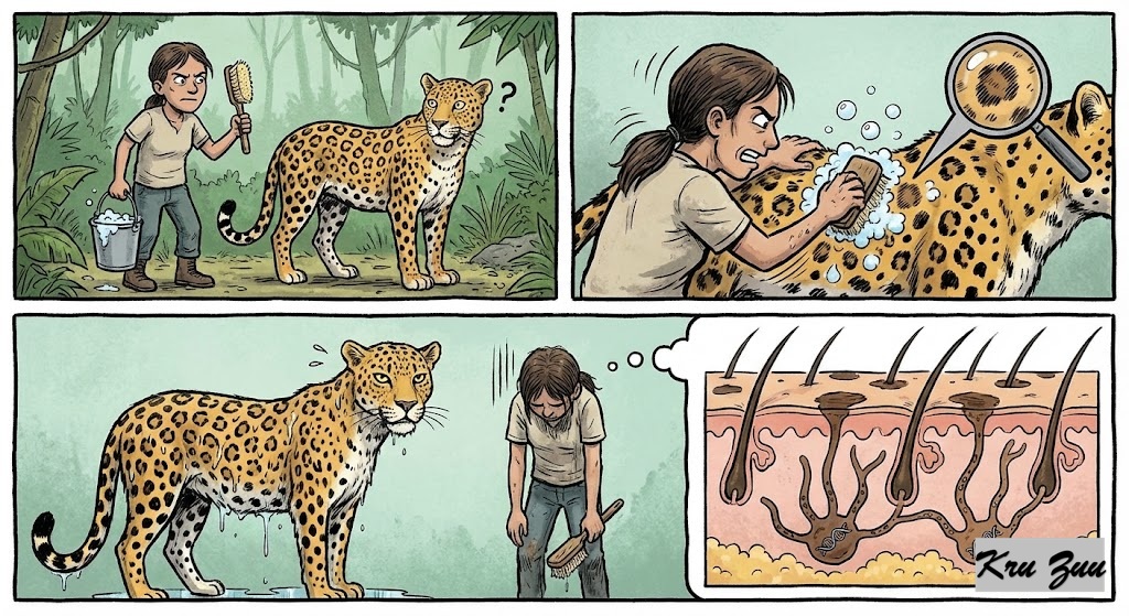 The Logic: A leopardโs spots are not dyed on its fur; they are part of its genetics. You cannot wash them off.