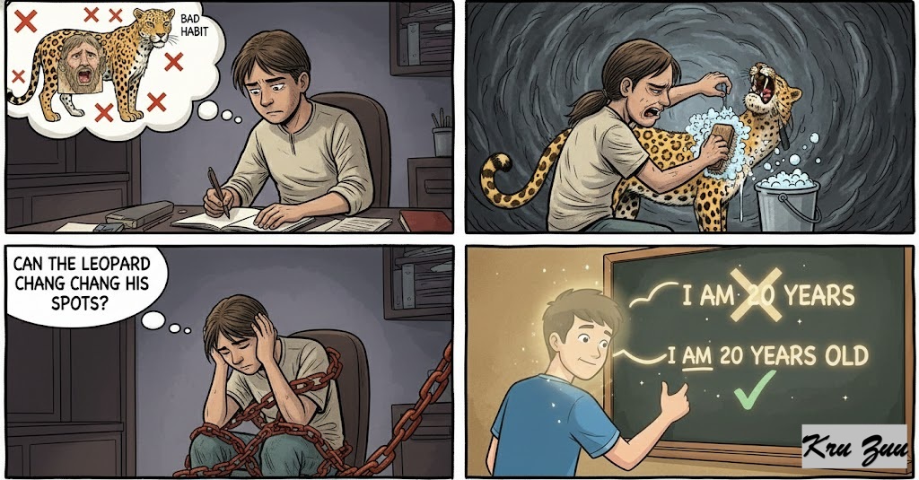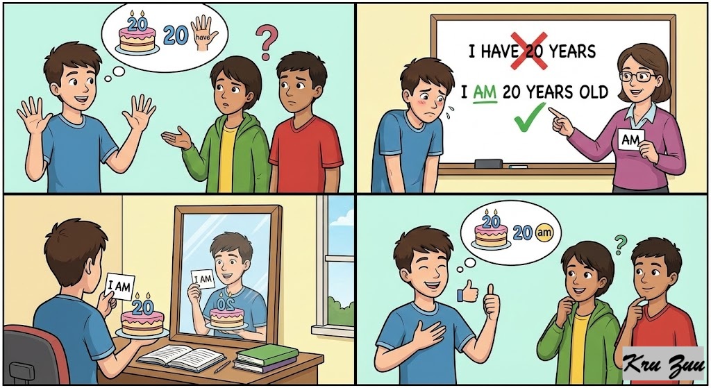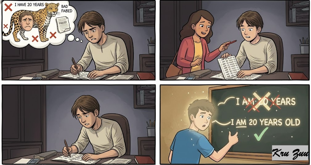 Situation: You keep making the same grammar mistake (e.g., saying “I have 20 years” instead of “I am 20 years old”).