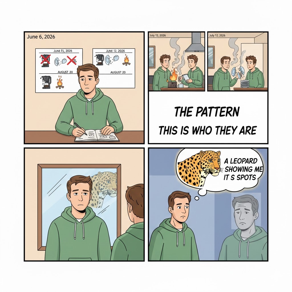You observe patterns. You understand that the best predictor of future behavior is past behavior. When someone shows you who they are, you believe them the first time. You don’t try to change the leopard; you simply don’t invite the leopard into your house.
