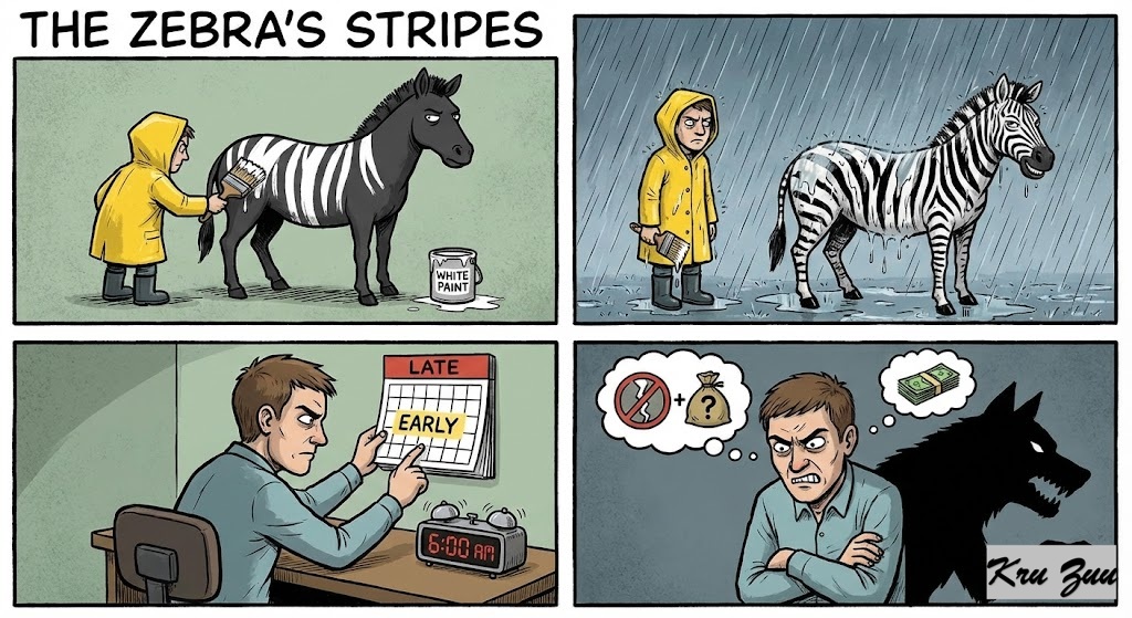 You can paint a zebra with white paint, but under the rain, the stripes will always return. People can change their habits (diet, wake-up time), but they rarely change their nature (integrity, temperament, core values).