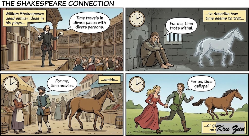 The Shakespeare Connection: William Shakespeare used similar ideas in his plays to describe how time seems to trot, amble, or gallop depending on who you are.