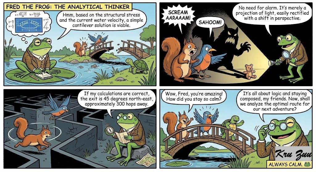 Fred the Frog: The analytical thinker, always calm. 🐸