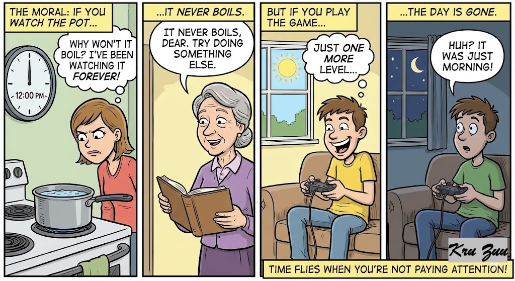 The Moral: If you watch the pot, it never boils. If you play the game, the day is gone.