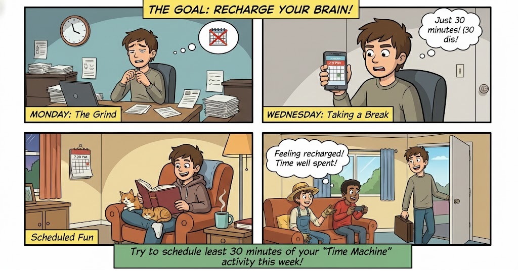 The Goal: Try to schedule at least 30 minutes of that activity this week to recharge your brain.