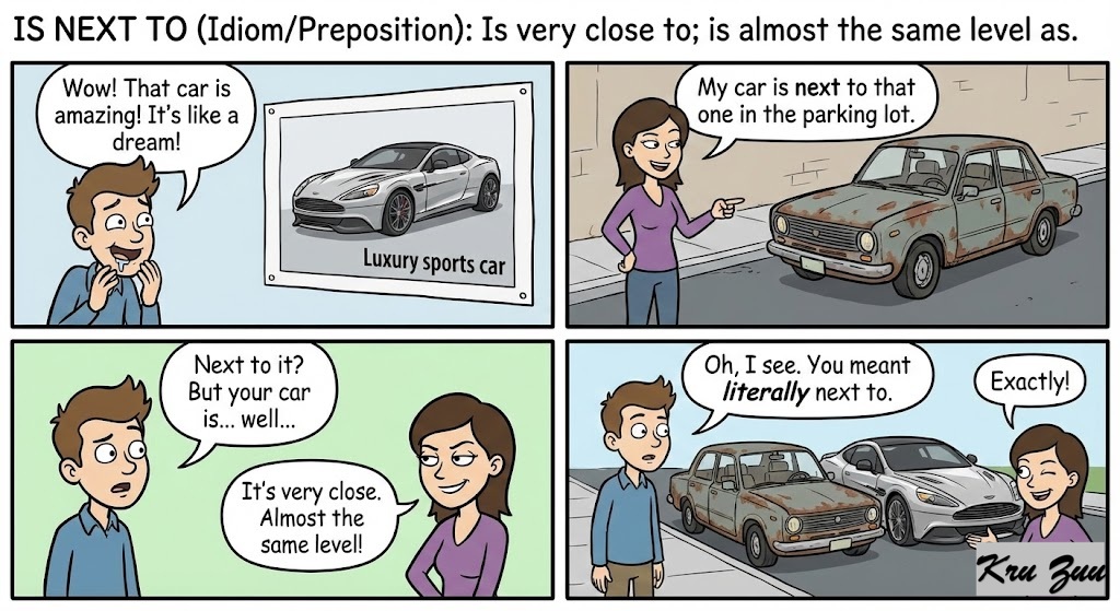 Is Next To (Idiom/Preposition): Is very close to; is almost the same level as.