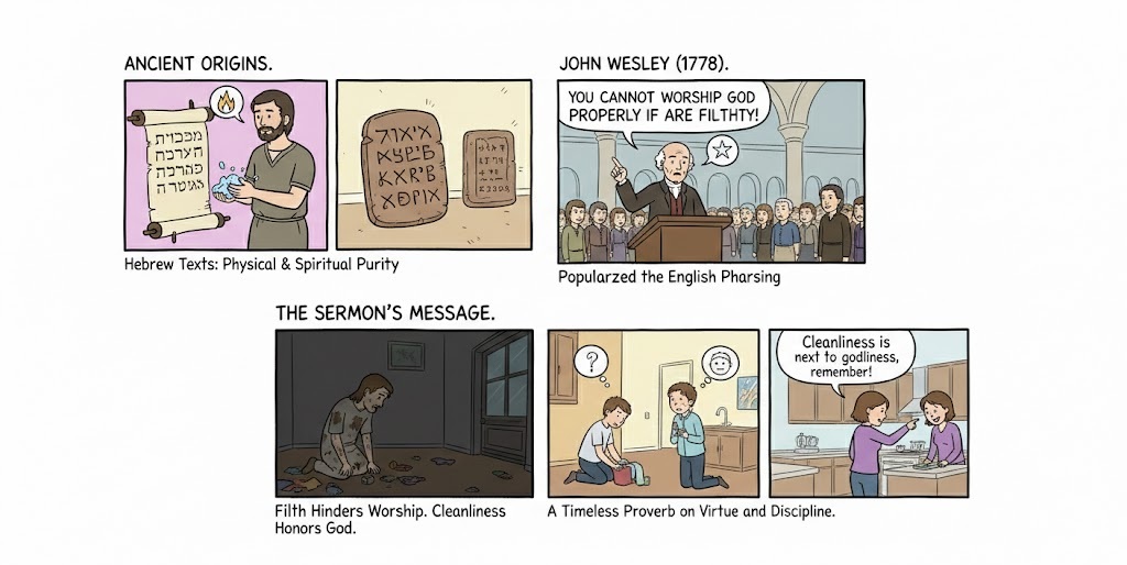 The Origin: While ancient Hebrew and Babylonian texts linked physical purity with spiritual purity, the exact English phrasing was popularized by John Wesley in a sermon in 1778. He argued that you cannot worship God properly if you are filthy.