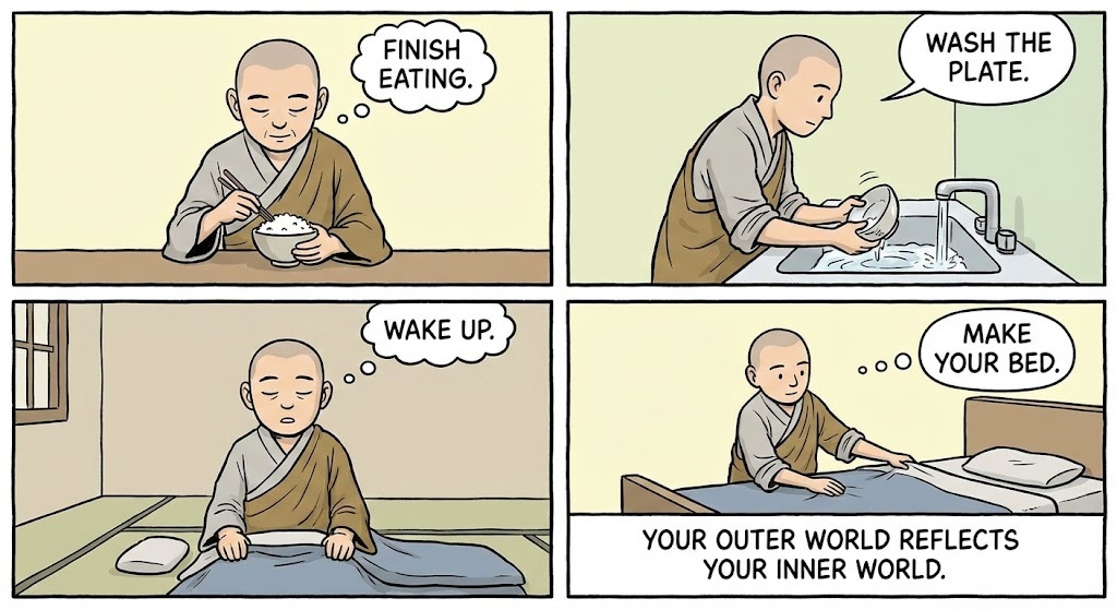 😇 The Hero (The Zen Master): You finish eating; you wash the plate. You wake up; you make your bed. 🛑 You understand that your outer world reflects your inner world.