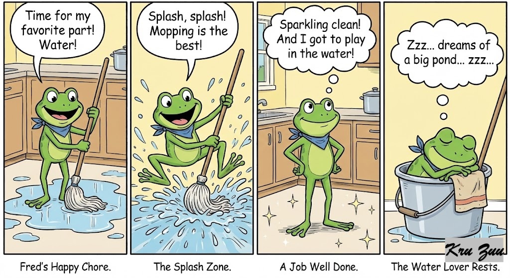 Fred: Mopped the floor with water (he loves water).