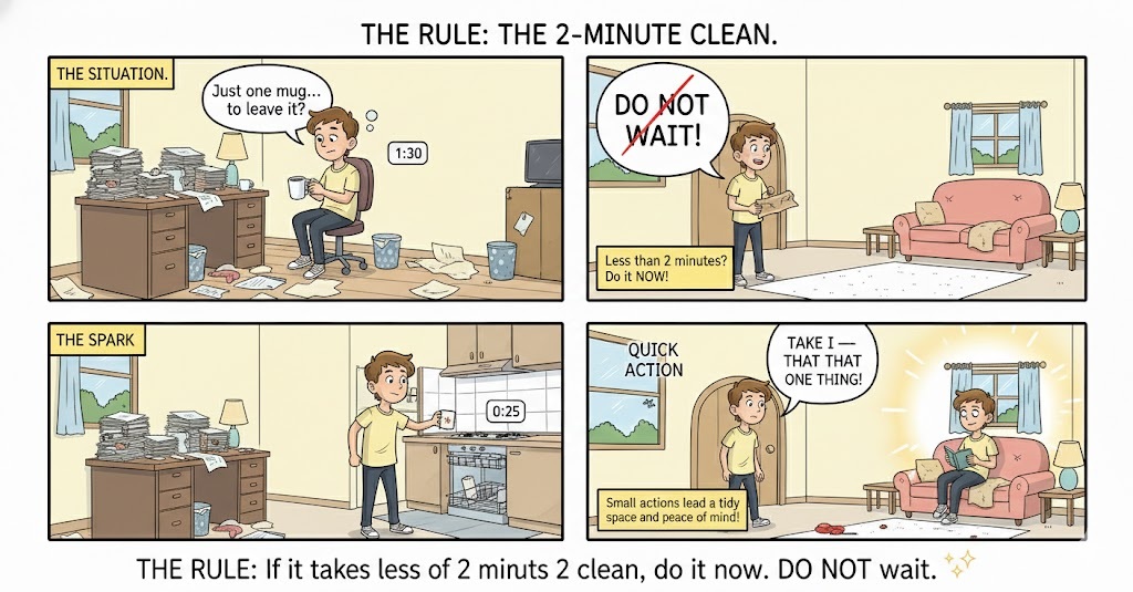 The Rule: If it takes less than 2 minutes to clean, do it now. DO NOT wait.