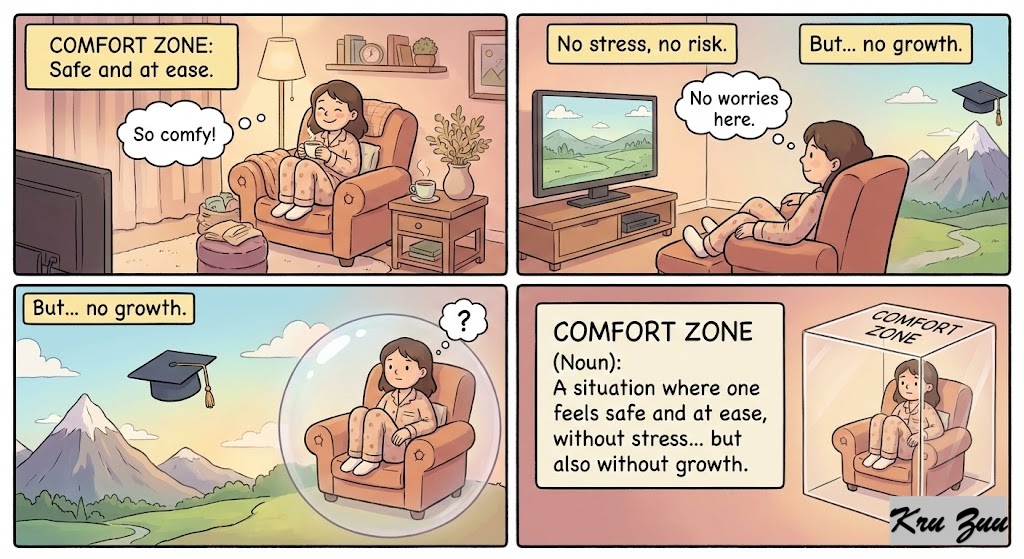 Comfort Zone (Noun): A situation where one feels safe and at ease, without stress… but also without growth.