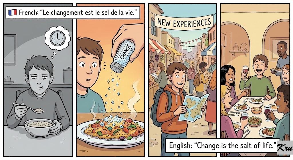 🇫🇷 French:“Le changement est le sel de la vie.” (Change is the salt of life).