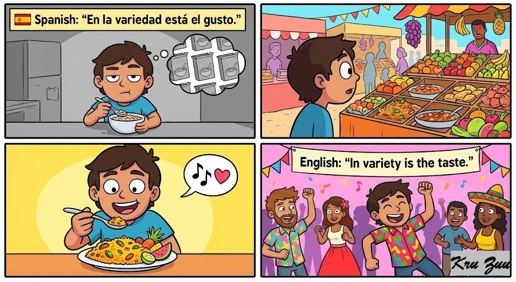 🇪🇸 Spanish:“En la variedad está el gusto.” (In variety is the taste).