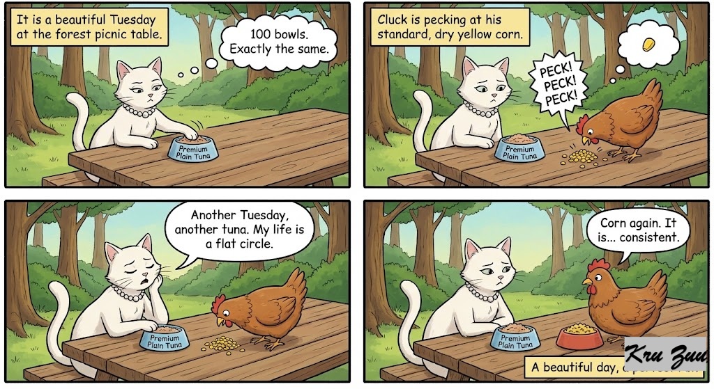 🎭 Short Story: The Tuna Monotony 🐟🐱🐔🐸