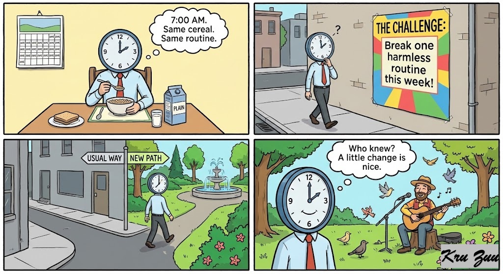 The Challenge: Break one harmless routine this week.