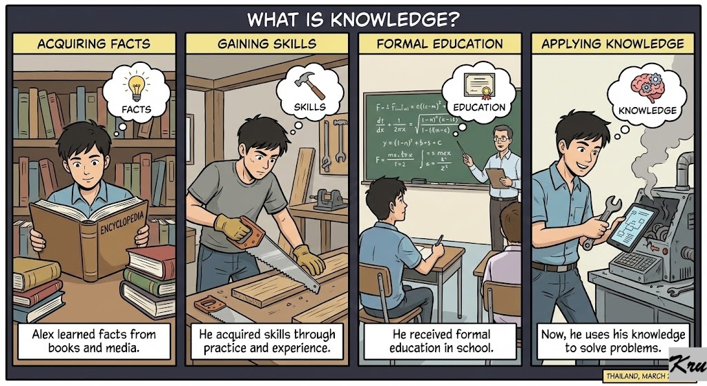 Knowledge (Noun): Facts, information, and skills acquired through experience or education.
