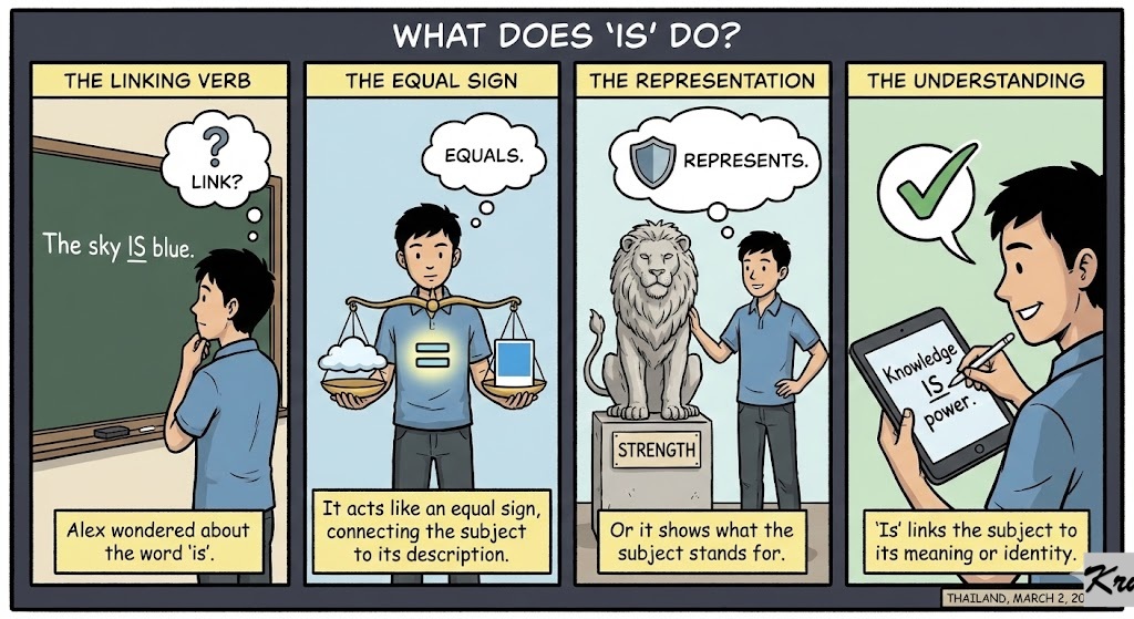 Is (Linking Verb): Equals; represents.