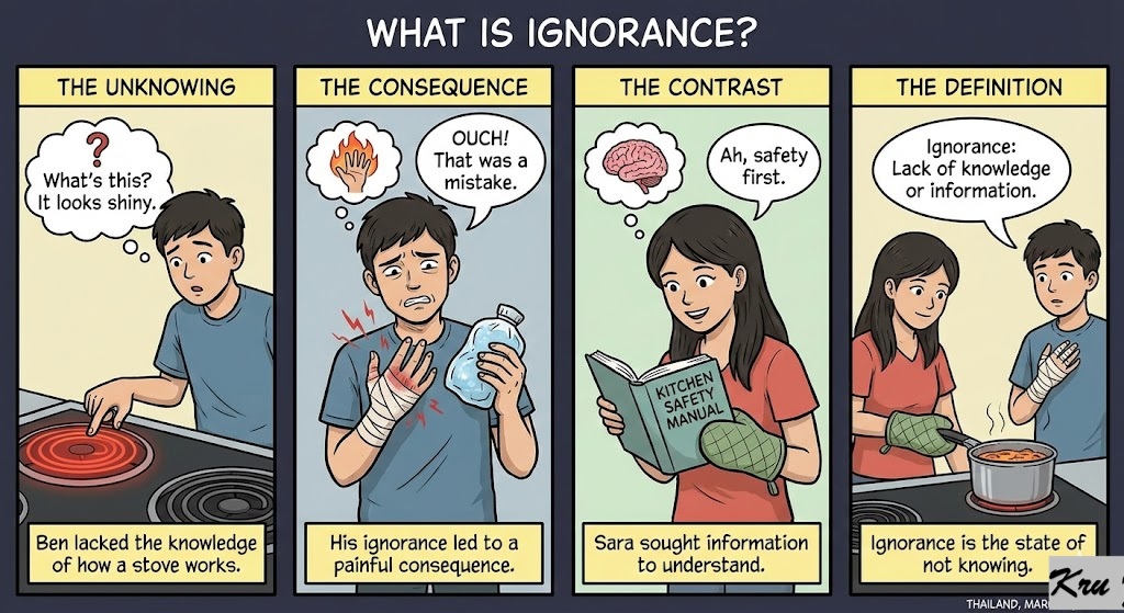 Ignorance (Noun): Lack of knowledge or information.