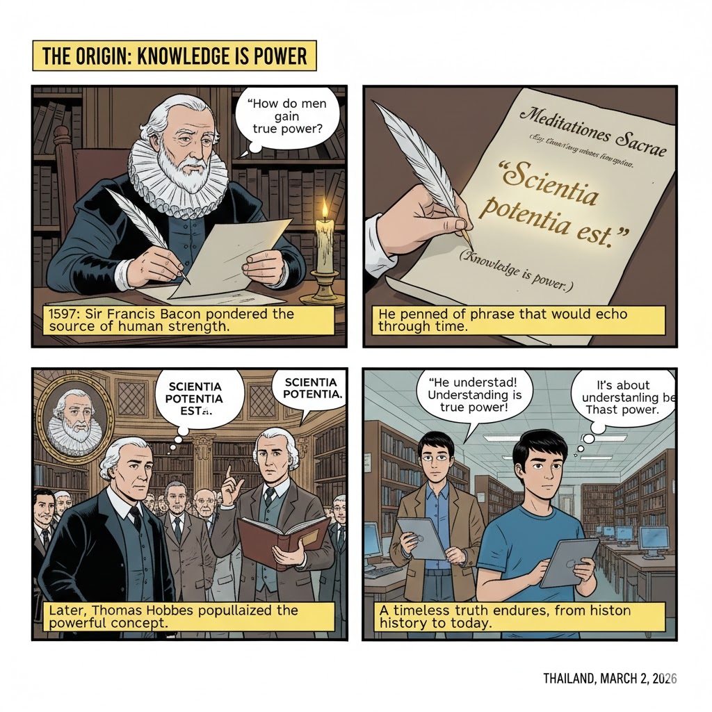The Origin: The exact Latin phrase “Scientia potentia est” is most famously attributed to the English philosopher Sir Francis Bacon in his work Meditationes Sacrae (1597), and later popularized by Thomas Hobbes.