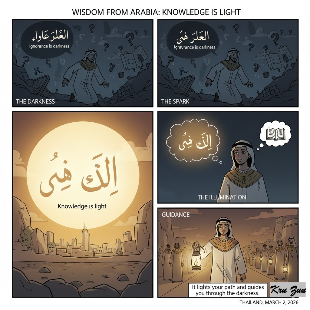 🇸🇦 Arabic: “العلم نور” (Al-‘ilmu noor) — Knowledge is light. (Meaning it guides you in the dark).
